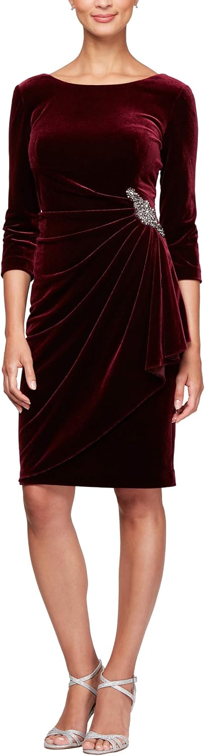 Alex Evenings Women S Short Three Quarter Sleeve Velvet Dress Petite Regular Burgundy 6