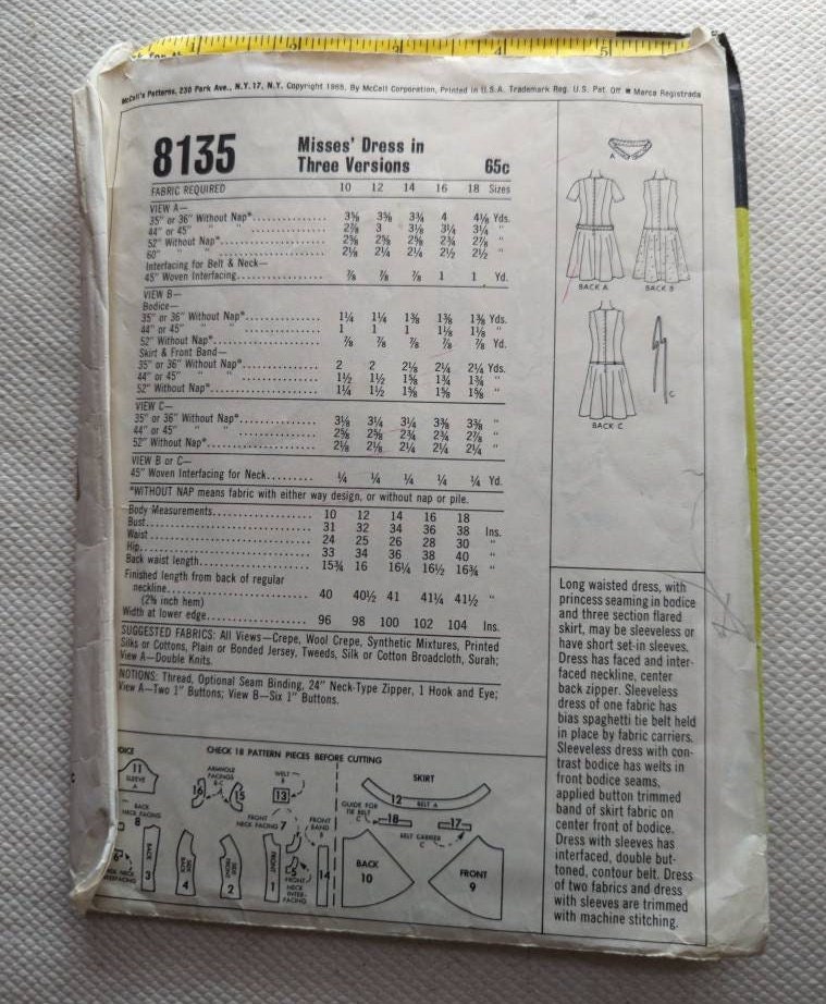 Vintage Mccall S 8135 Sewing Pattern Dress Bust 32 Etsy